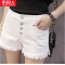 南极人 牛仔短裤女2018夏季新款韩版高腰排扣宽松破洞毛边阔腿裤弹力显瘦热裤JBD922