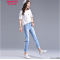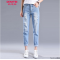 商品名称: 荻尼菲夏季牛仔裤女2018新款时尚高腰牛仔九分破洞哈伦女裤