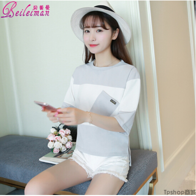 商品名称: 贝蕾曼 t恤女2018夏新款短袖韩版半袖宽松休闲时尚上衣打底