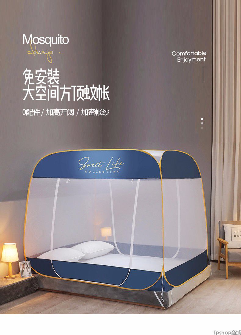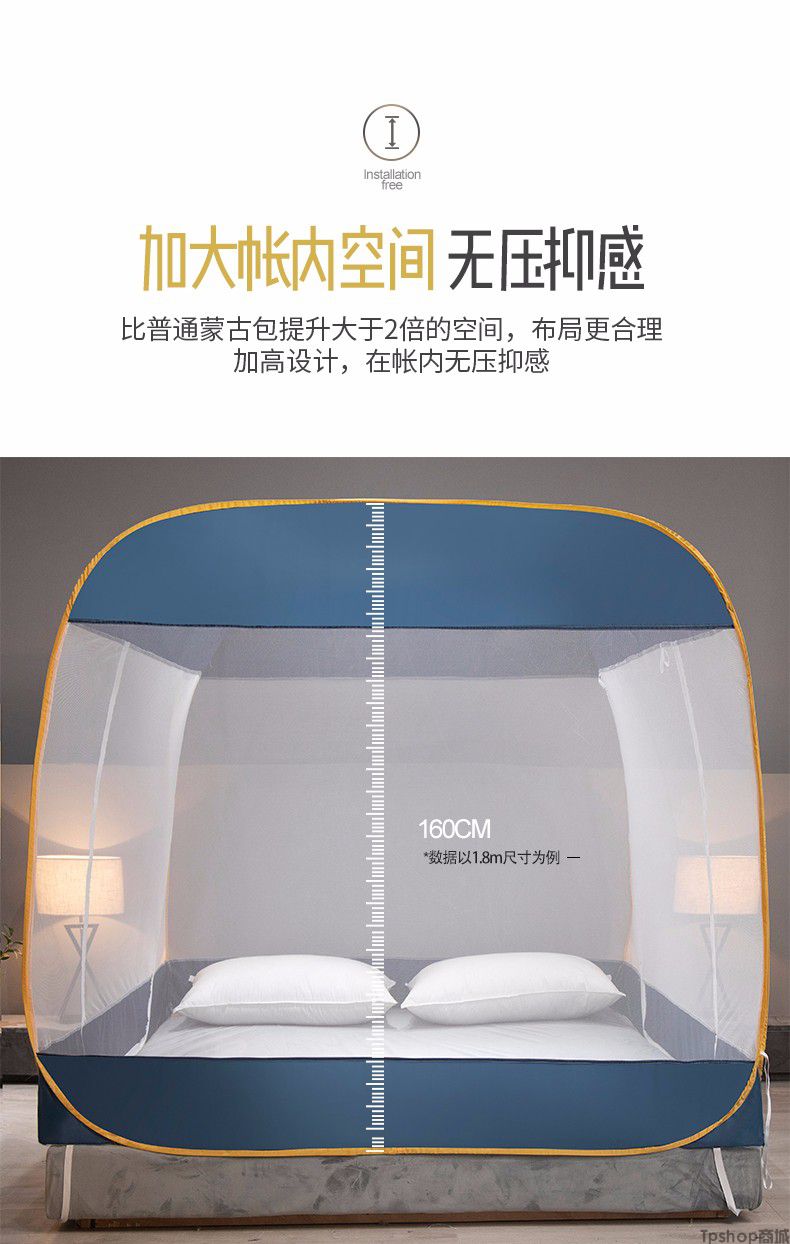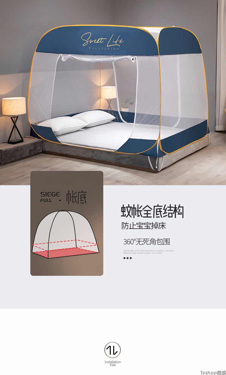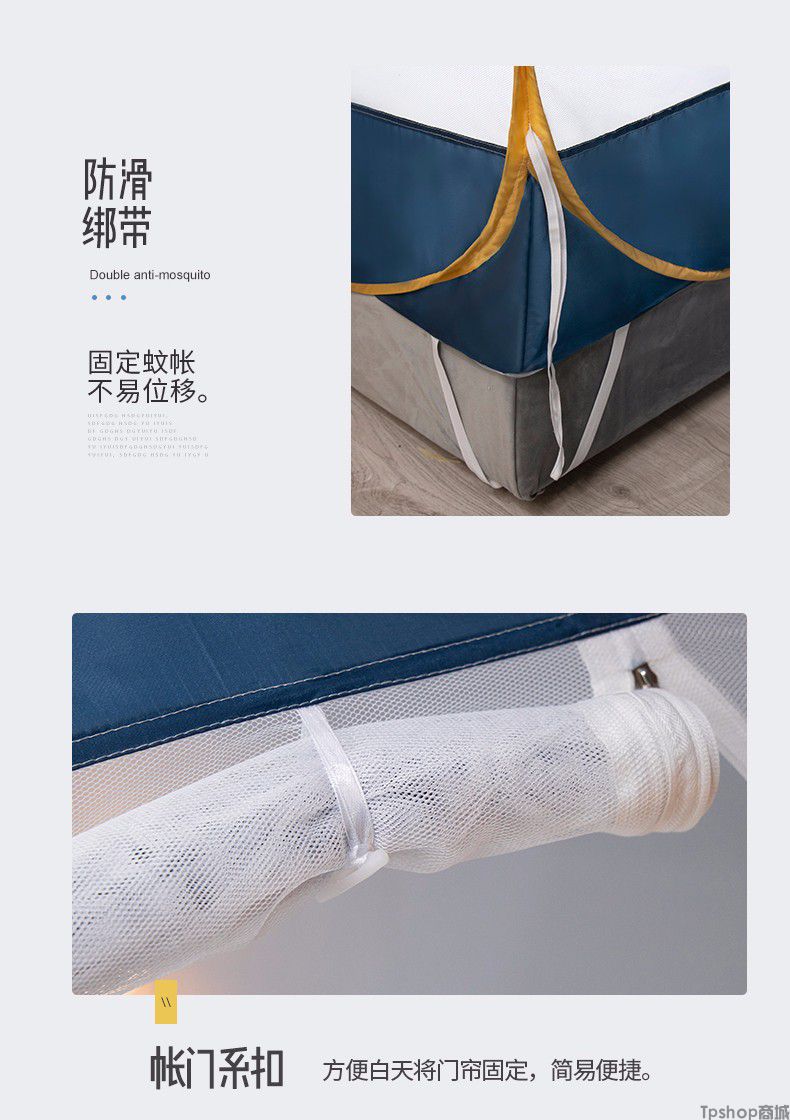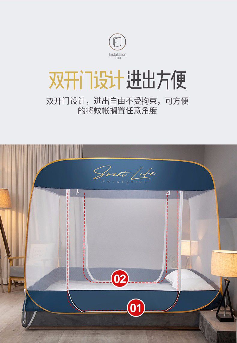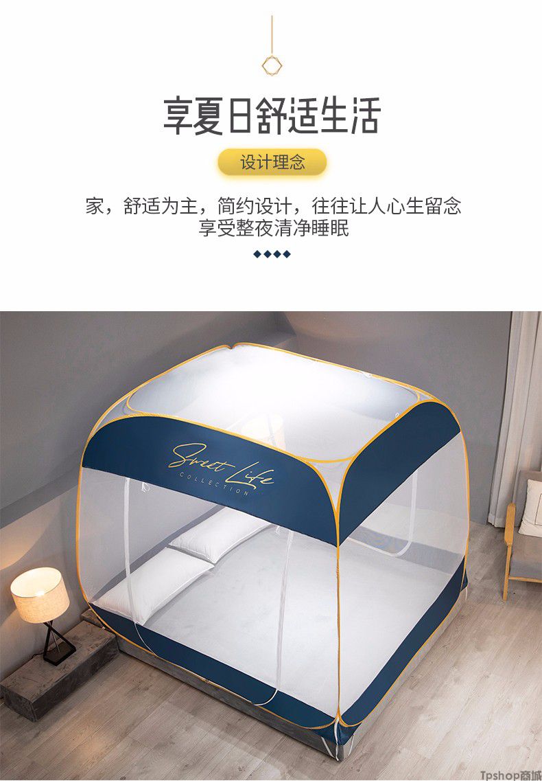 商品名称: [正常发货]南极人家纺蚊帐免安装钢丝蒙古包纹帐多开门可折叠拉链帐子大方顶防蚊1.5m 1.8m 小时代-月光蓝