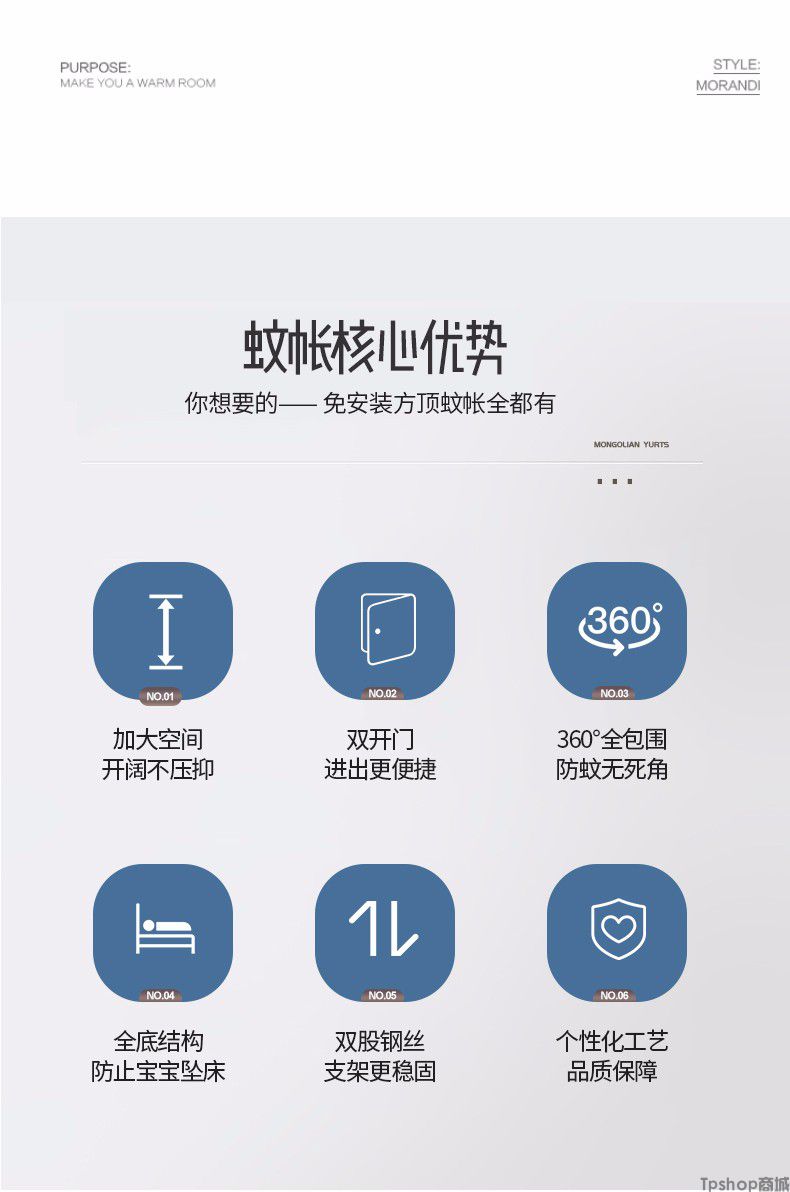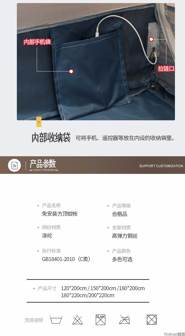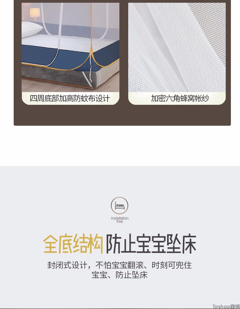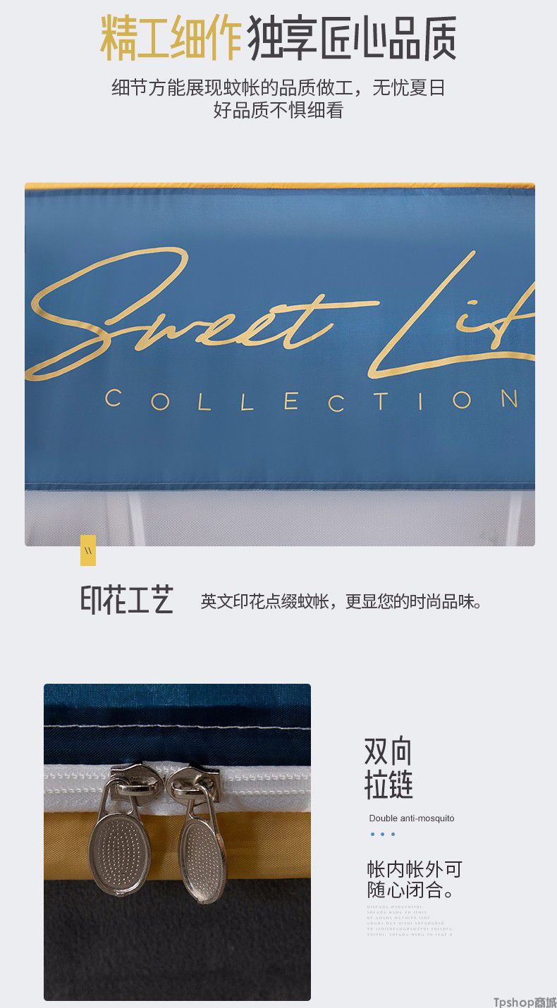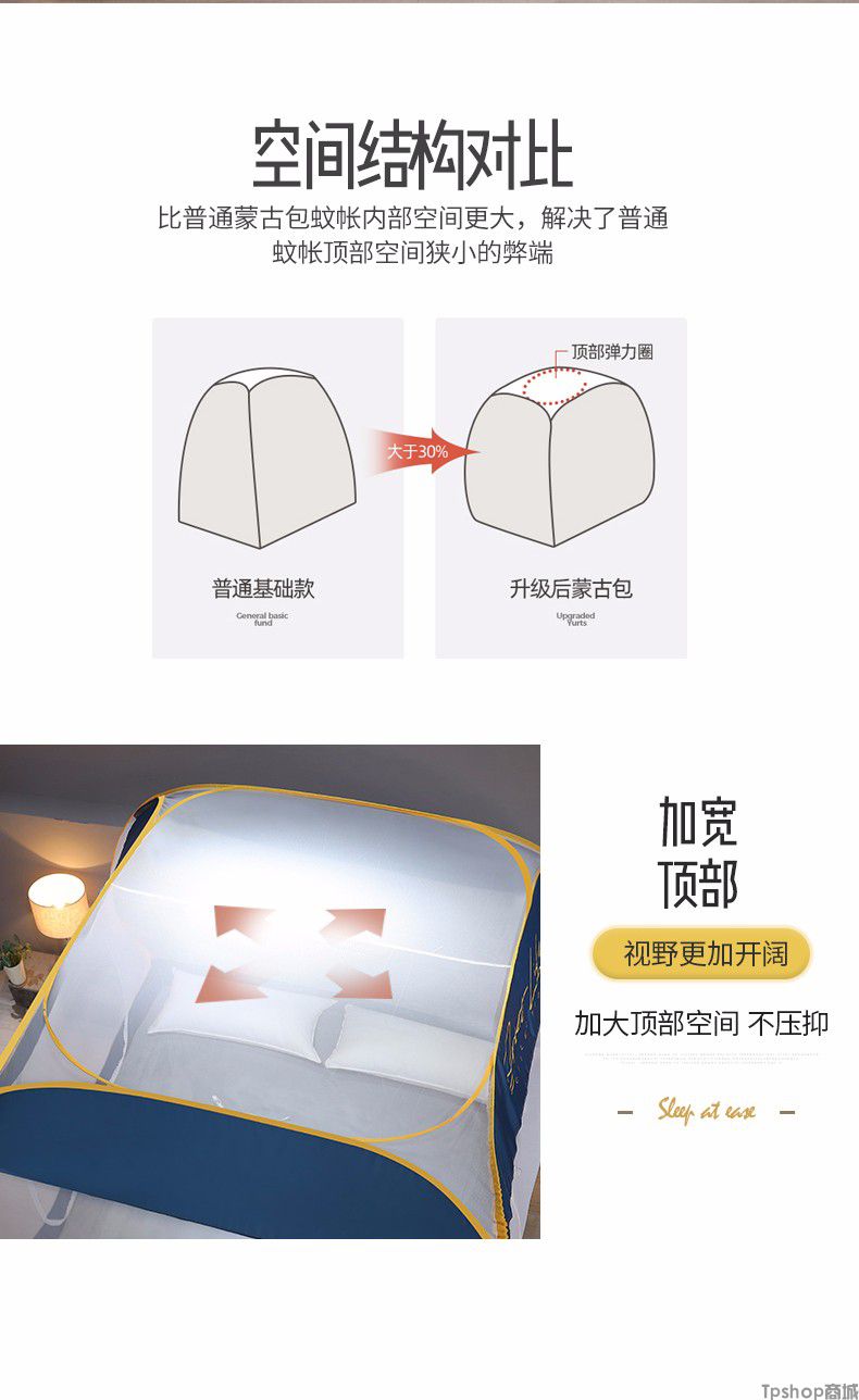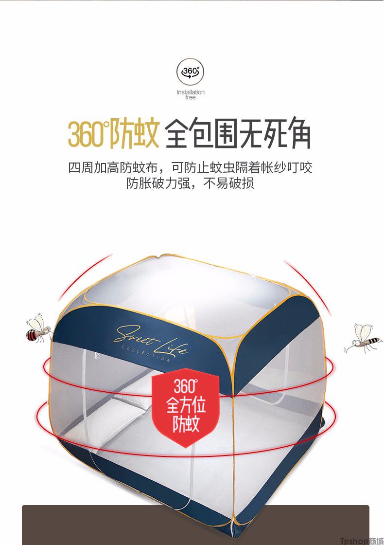 商品名称: [正常发货]南极人家纺蚊帐免安装钢丝蒙古包纹帐多开门可折叠拉链帐子大方顶防蚊1.5m 1.8m 小时代-月光蓝