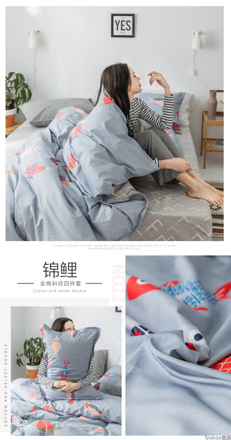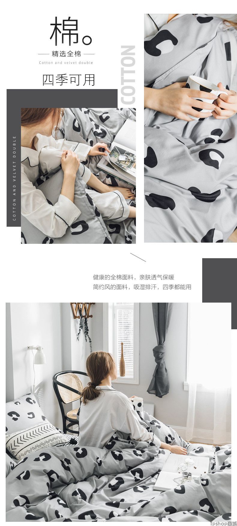 ins风简约网红全棉四件套纯棉床单被套女1.5m1.8米床上用品三件套