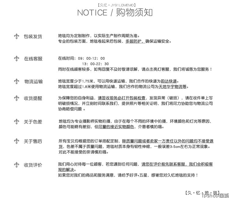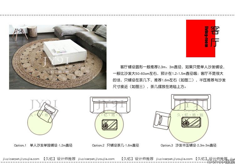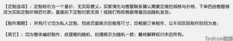 • 地毯尺寸: 100CM直径圆 120CM直径圆 160CM直径圆 200CM直径圆 250CM直径圆 300CM直径圆 350CM直径圆 400CM直径圆 定制尺寸