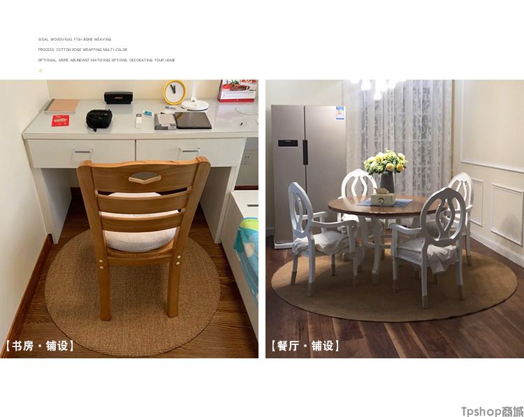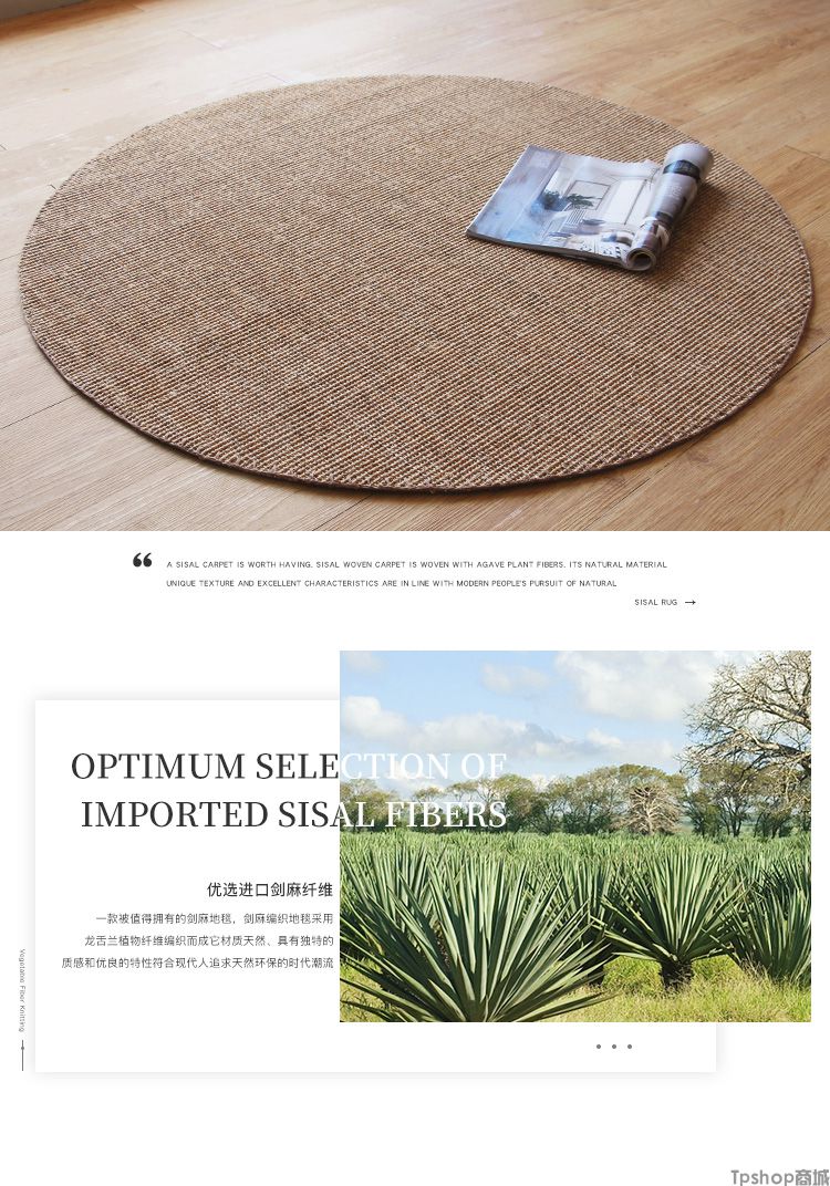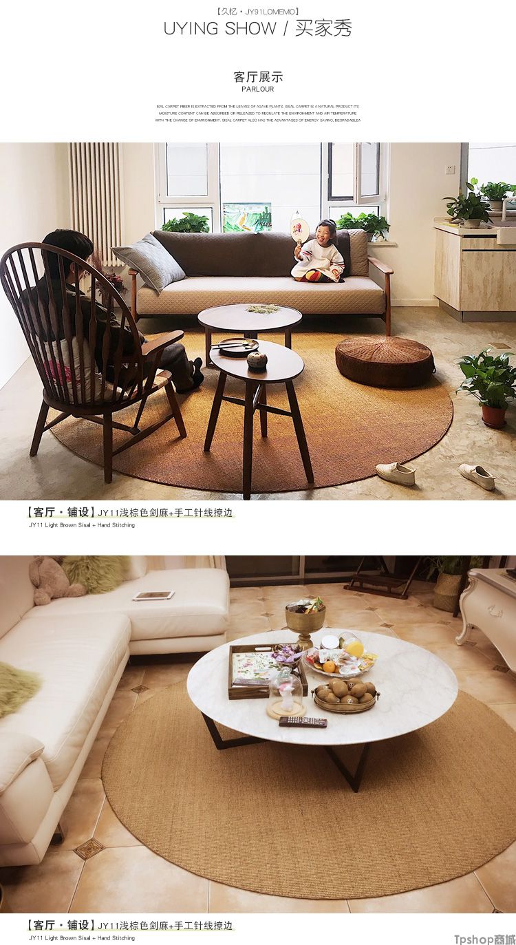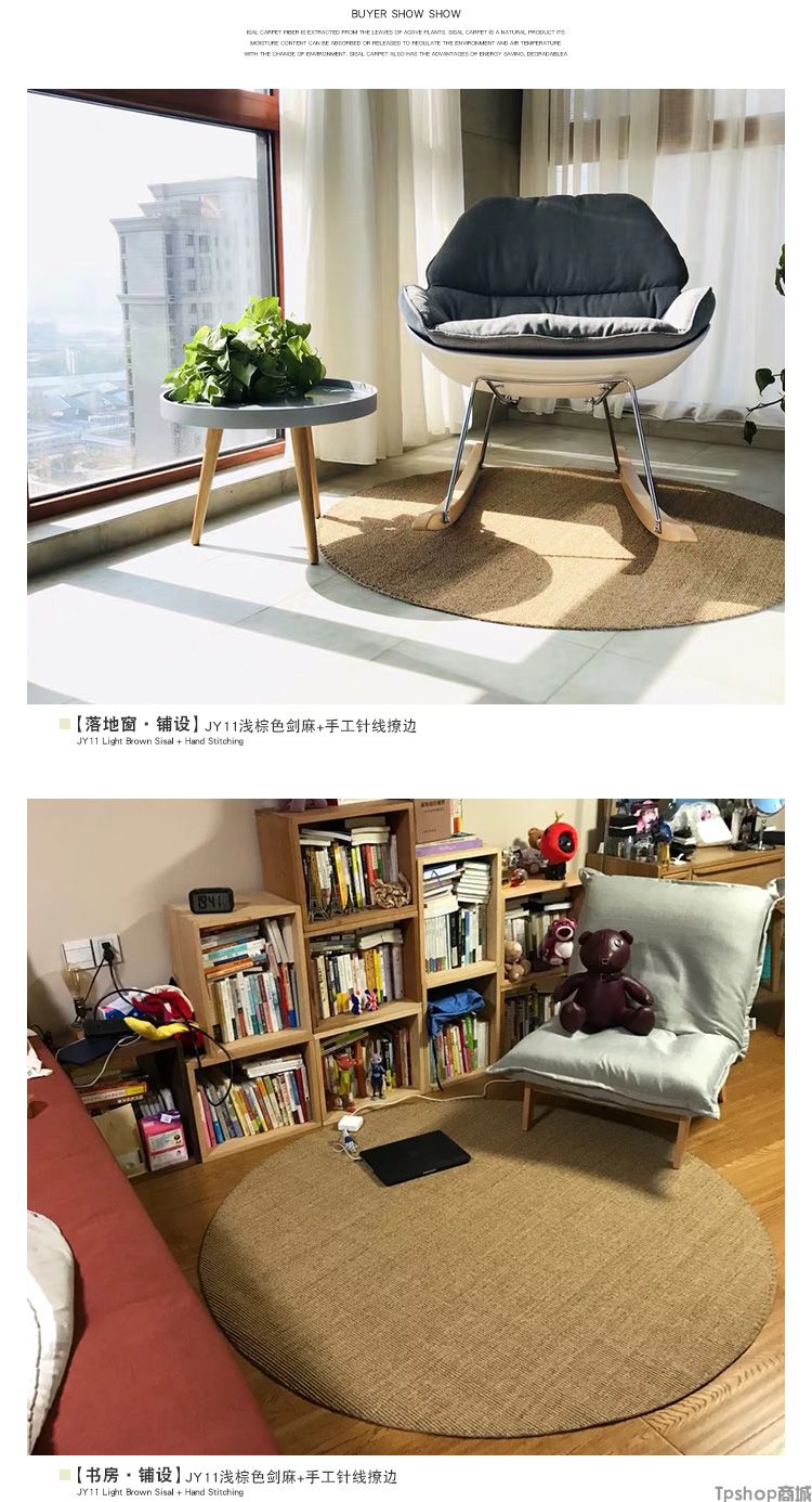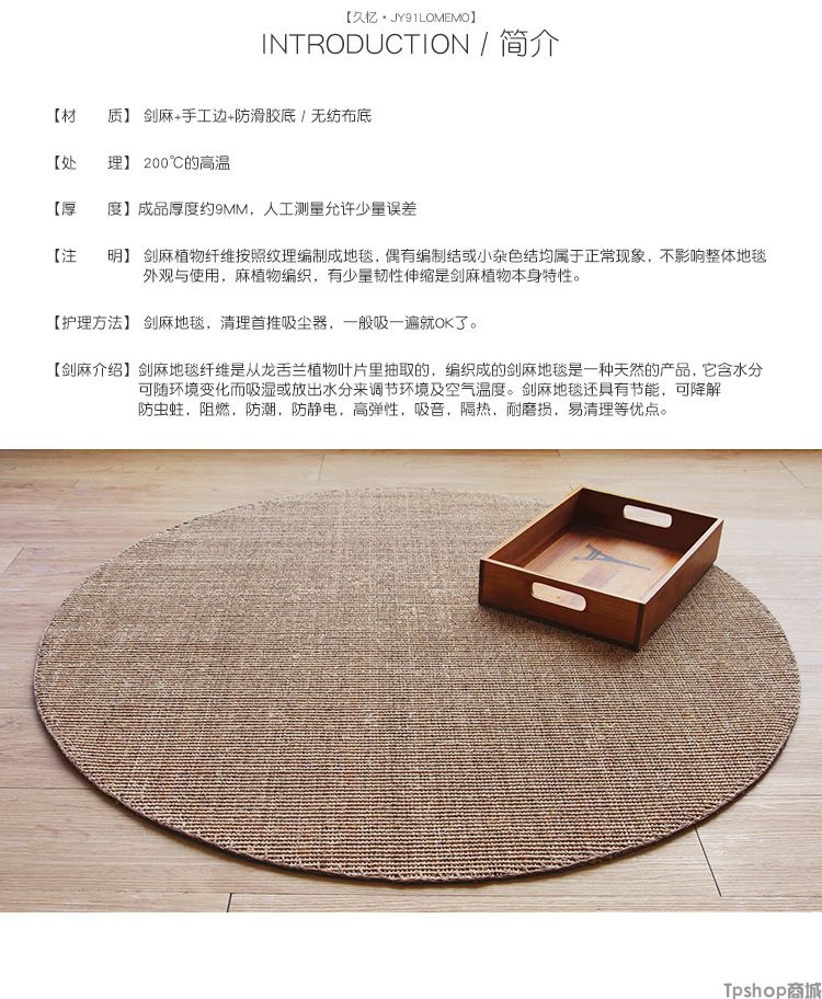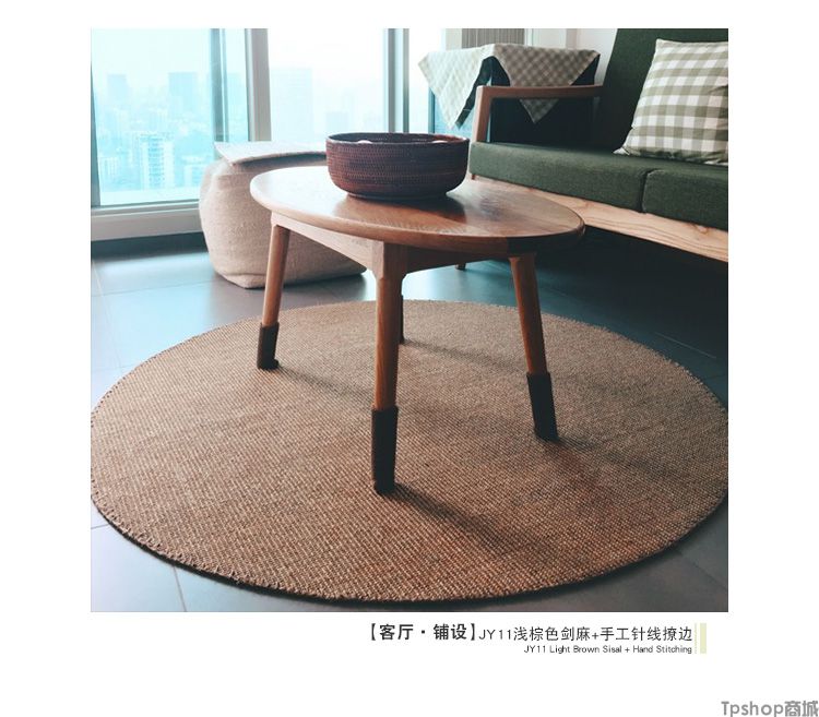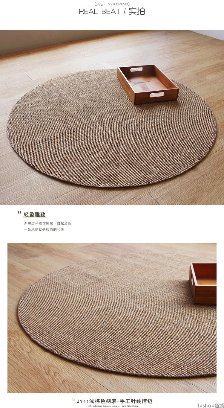商品名称: 定制 久忆手工缝边圆形剑麻地毯简约书房客厅茶几餐桌麻编转椅地垫定制
