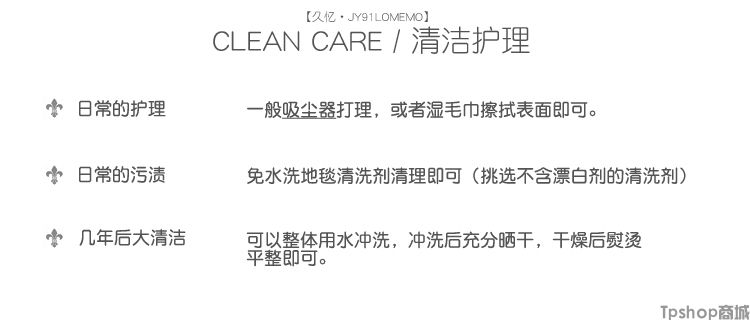 • 清洗类型: 吸尘 干洗 可手洗 其他/other