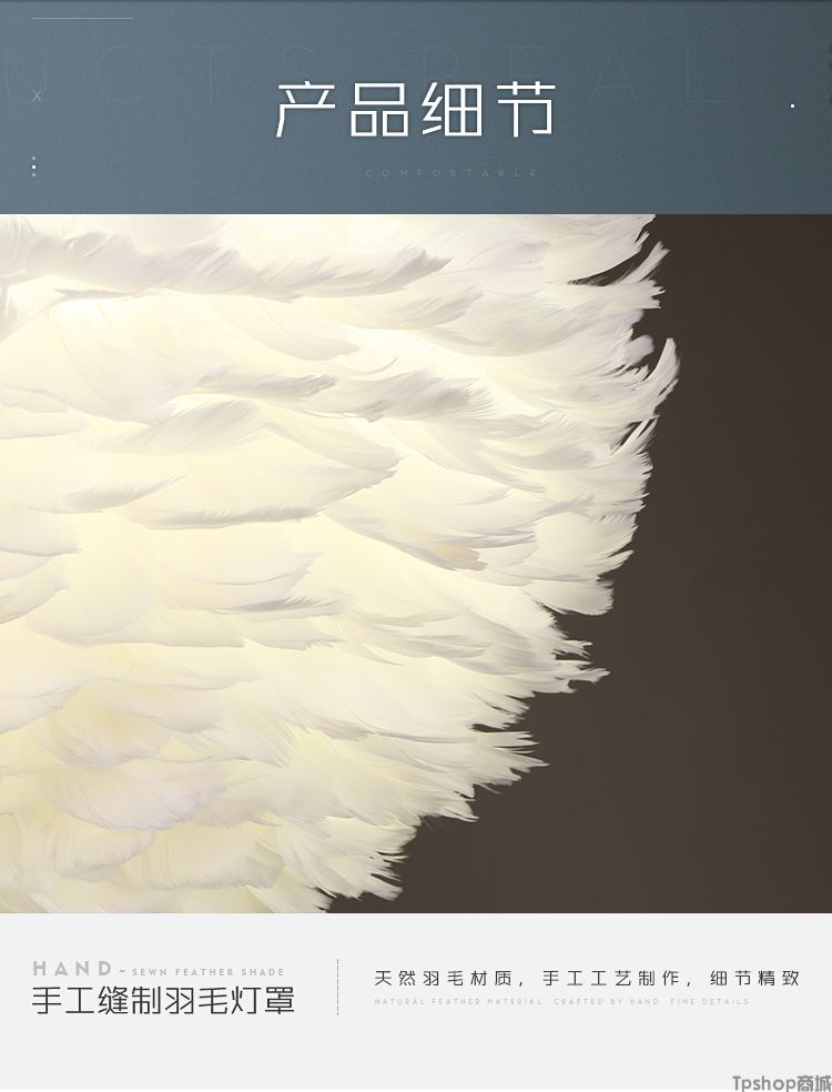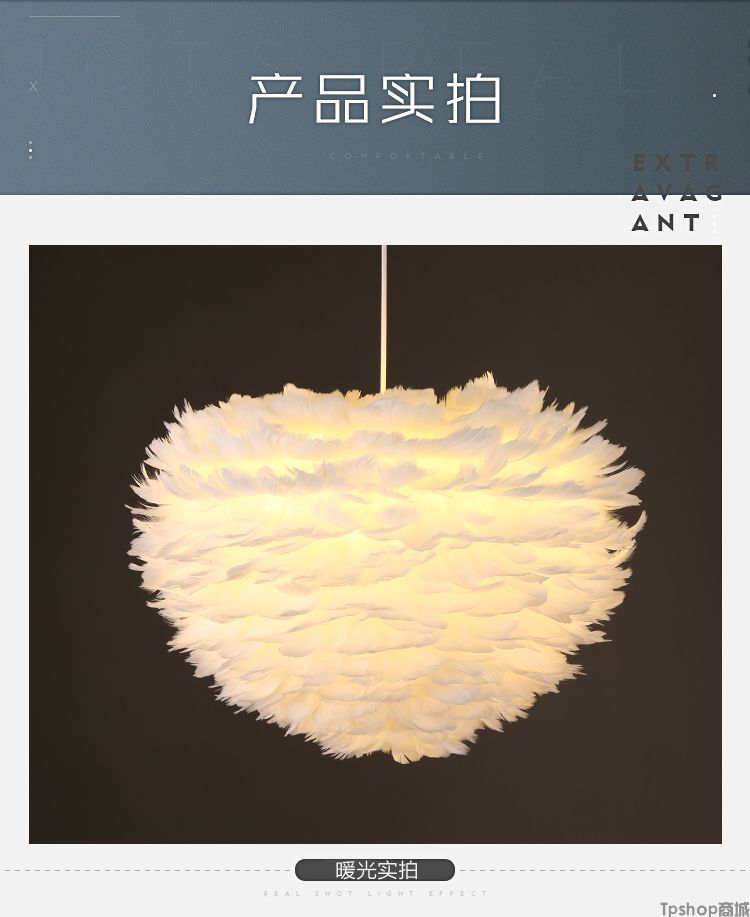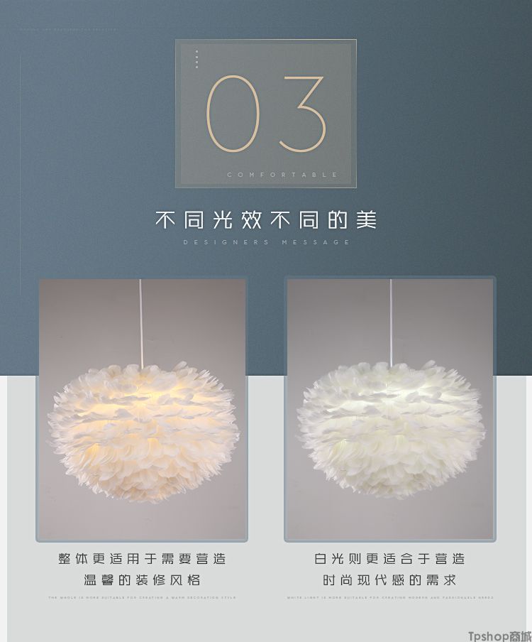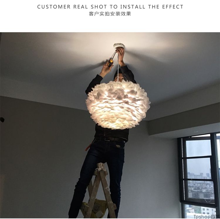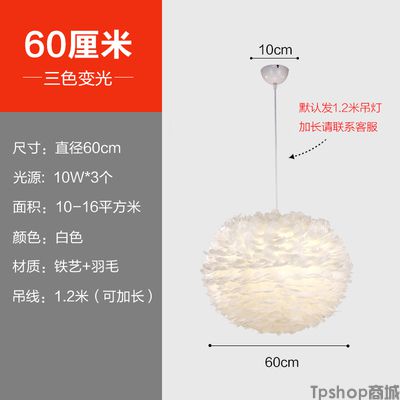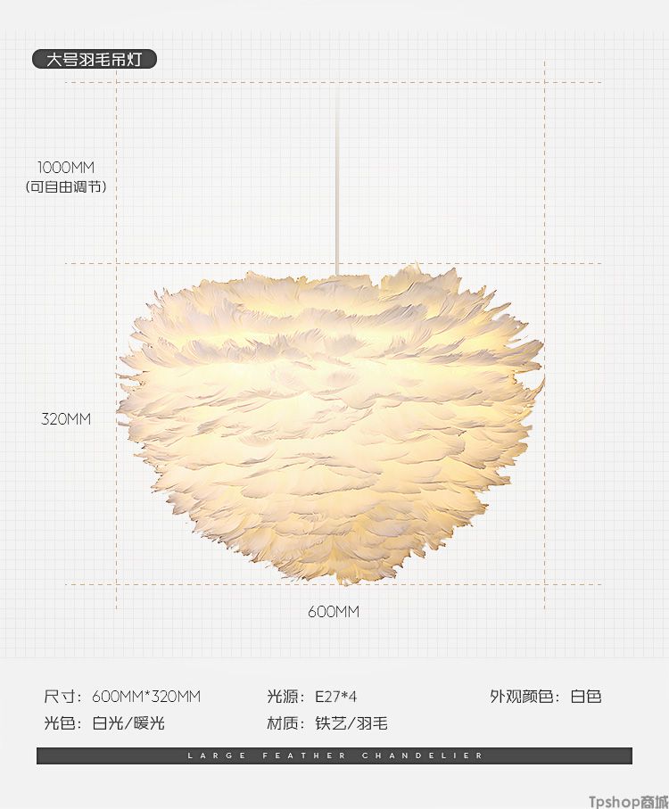 商品名称: 羽毛灯卧室北欧灯具现代简约创意客厅儿童房温馨浪漫公主羽毛吊灯