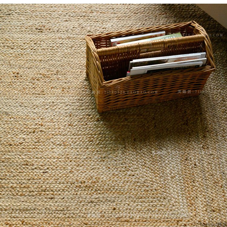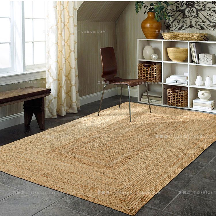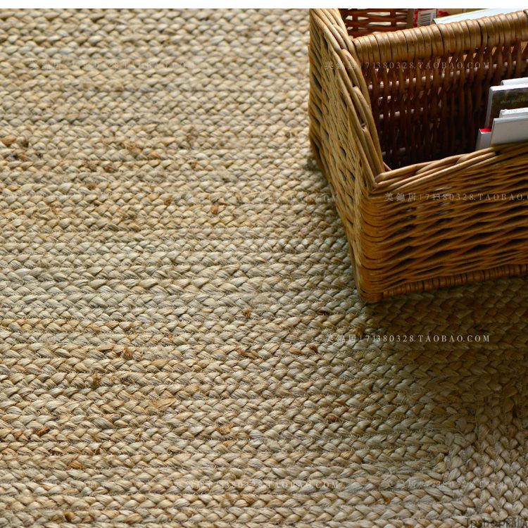 商品名称: 优立印度手工编织美式乡村非亚麻剑麻餐厅客厅 稻草人黄麻地毯