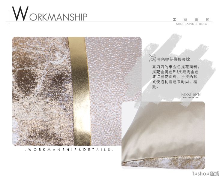 商品名称: 澜品家居简约现代北欧/样板房靠包抱枕靠垫/浅金色提花拼接腰枕