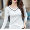 芈儿2018新款春季女装百搭修身显瘦纯棉v领长袖t恤女百搭打底衫ME831